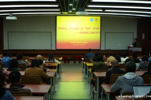 2019年10月24日星期四下午3点半,东凌雷竞技新官网登录全体教职工专题理论学习会在经管楼313举行。学院党委邀请学校纪委副书记、监察室主任兼巡察办主任吴豪伟为全体教职工作题为“不忘初心、牢记使命,做‘四有’好老师”专题教育报告,会议由学院党委书记武森主持。
