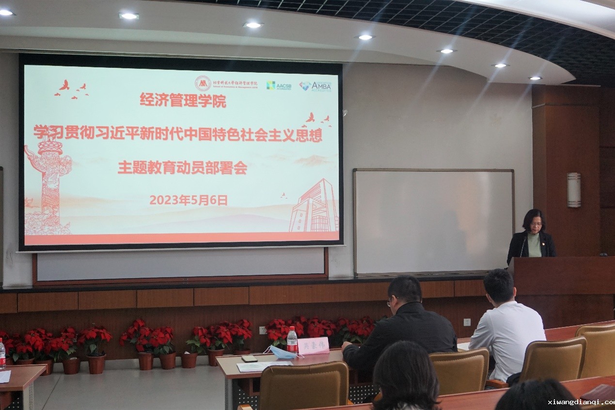 武森从开展主题教育的重大意义、目标要求和工作安排等三个方面介绍了学院开展主题教育的工作方案,并作动员部署。她强调,全院师生员工要深刻认识开展学习贯彻习近平新时代中国特色社会主义思想主题教育的重大政治引领意义、理论武装意义、实践推动意义、使命感召意义,切实把思想和行动统一到党中央决策部署上来,不折不扣抓好贯彻落实,以高度的政治自觉、饱满的政治热情、严肃的政治态度,积极投身主题教育,确保取得实效。她指出,全院师生要切实提高政治站位,认真落实中央统一部署和《中共教育部党组关于教育部直属高校深入开展学习贯彻习近平新时代中国特色社会主义思想主题教育的指导意见》要求,把“规定动作”做到位,同推动学院中心工作紧密结合,确保主题教育目标要求得到实现。同时充分发挥“两优一先”先进典型和本科低年级党支部入选2022年“全国党建工作样板党支部”培养创建以及管理科学与工程系党支部获批2022年学校首批“一融双高”样板党支部等的示范带动作用,将开展主题教育中激发出的信念信心、热情激情转化为攻坚克难、干事创业的具体行动,为把学院建设成为具有行业特色的一流经管学院而尽最大努力,为早日实现建成有特色的一流大学“北科梦”而奋勇前进,为全面建设社会主义现代化国家、实现中华民族伟大复兴中国梦贡献雷竞技最新版力量。